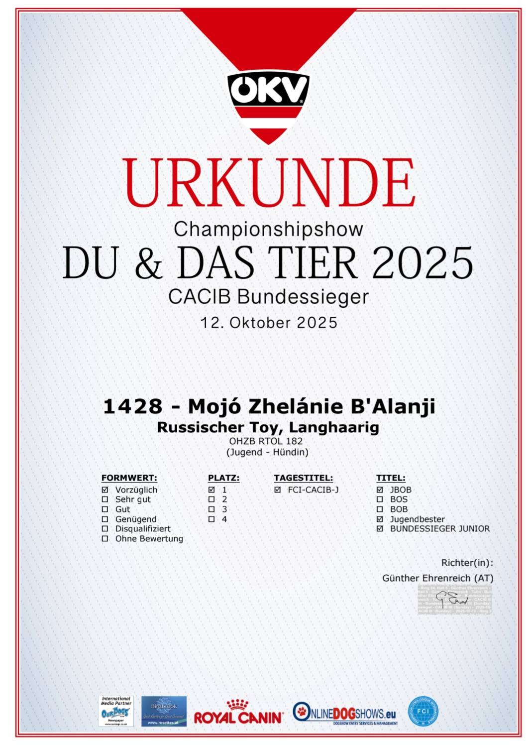 V1, J-CACIB, Jugendsieger & Bundessieger 2025