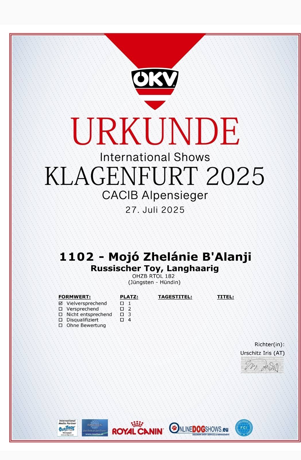 CACIB Judge: Mrs. Urschitz Iris (AT)