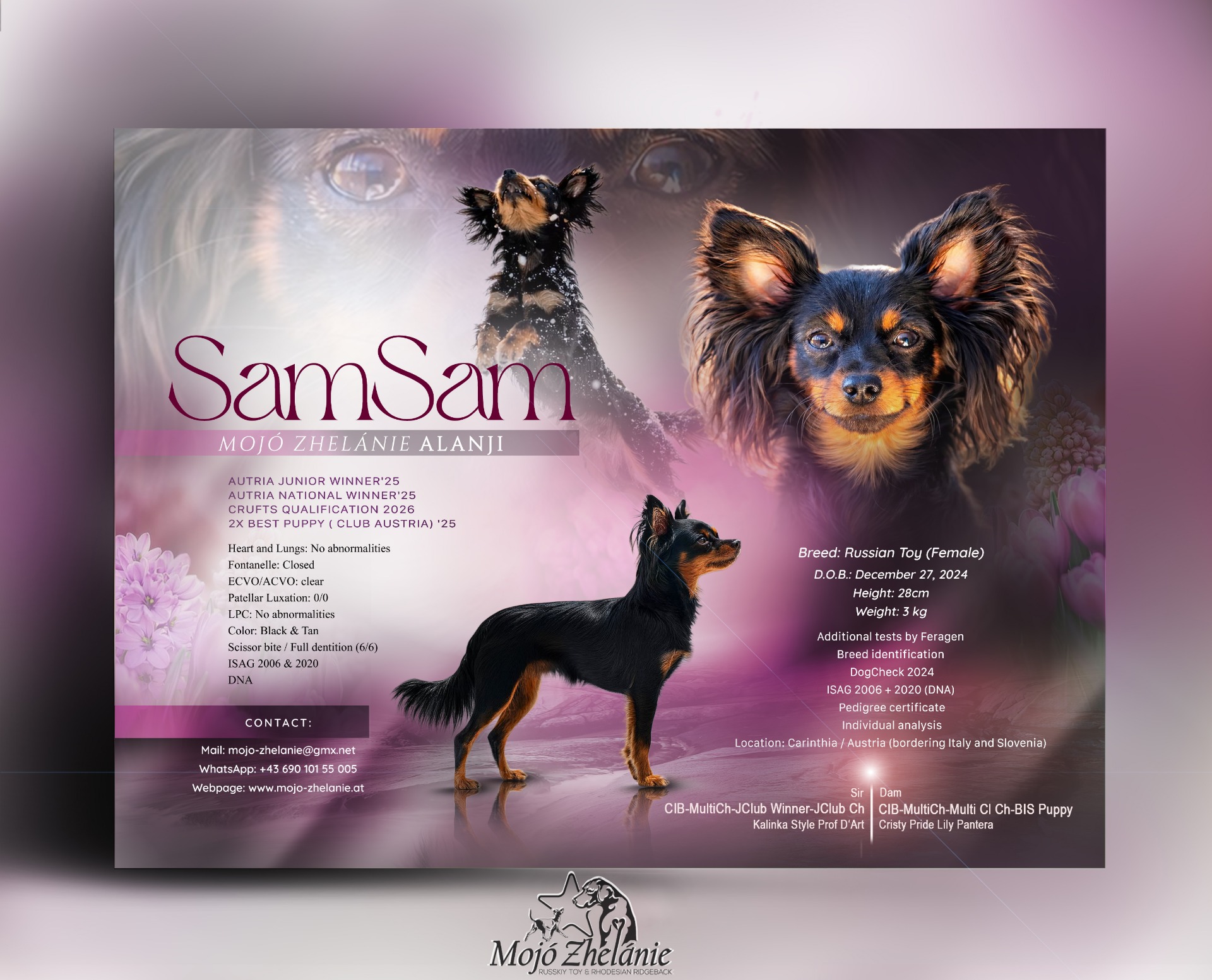 Aus der wundervollen Verpaarung CIB MultiCH Kalinka Style Prof-D'Art & CIB MultiCH BIS Puppy'19 Cristy Pride Lily Pantera durften 2024 gesunde, lebensfrohe Welpen das Licht der Welt erblicken.