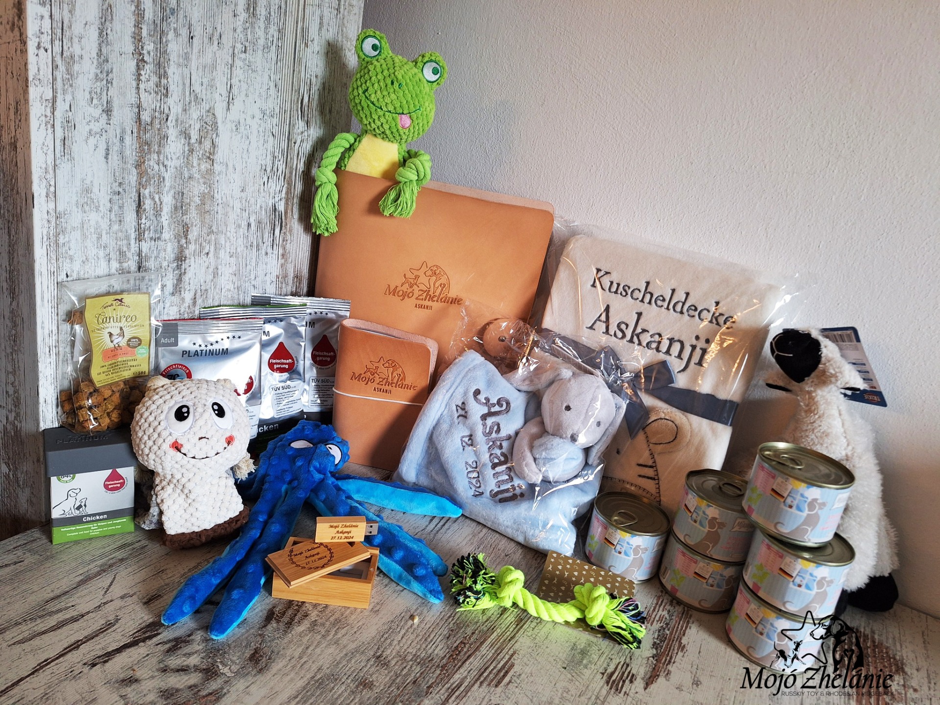 Ein liebevoll zusammengestelltes "Welpenpaket" begleitet jeden unserer Schützlinge auf seinem Weg in die neue Familie – mit Futter, vertrauten Spielsachen und kleinen Dingen, die den Start leichter machen.
